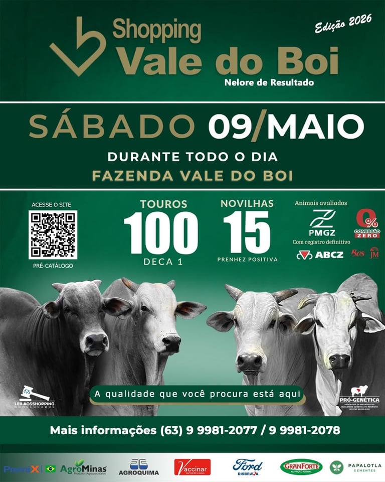 Há 20 anos acompanho o trabalho de melhoramento genético do rebanho Vale do Boi, sendo uma referencia para a região de Araguaína, Estados do Tocantins, Maranhão e Pará! Além de ser a maior referencia de exemplo na complementação da formação de médicos veterinários da UFT e UFNT. Seleção totalmente a pasto, com uma alta pressão de seleção para produção carne, habilidade materna e precocidade! Então, eu tenho muita confiança no trabalho executado e como professor e especialista na área de melhoramento animal recomendo muito a aquisição desse material genético. Vale muito a pena conferir e adquirir essa genética!"